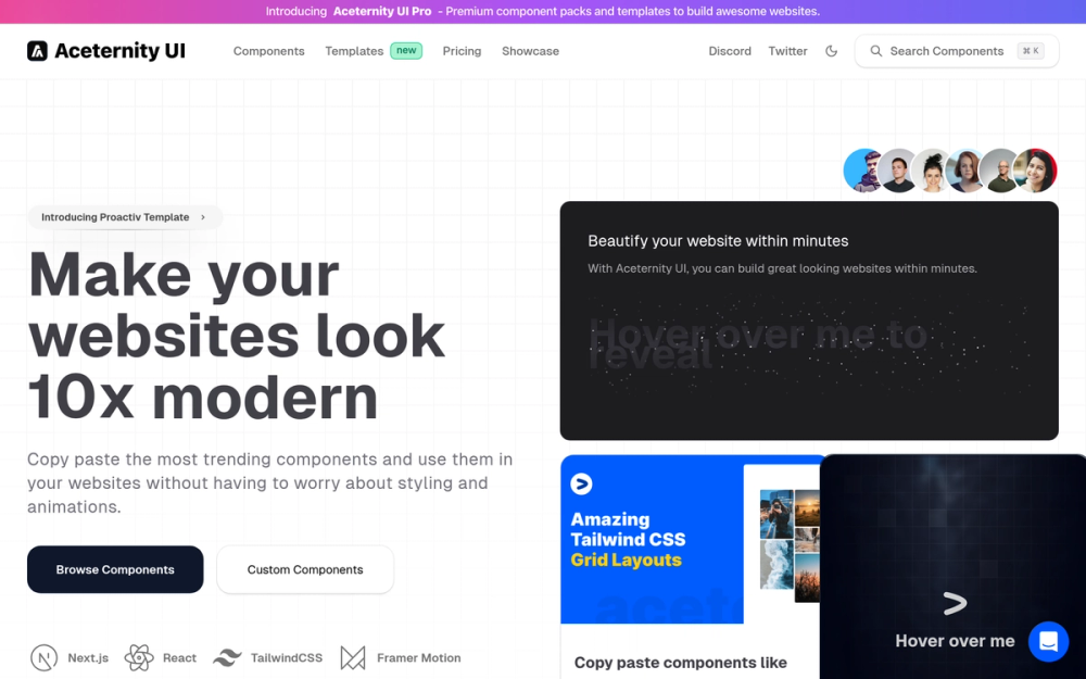 Aceternity UI Pro offers a collection of premium components and templates designed to enhance web development efficiency. With support for Next.js, React, TailwindCSS, and Framer Motion, it enables developers to create visually appealing websites quickly. Key features include easy-to-copy components, modern styling, and animations. Ideal for developers looking to streamline their workflow and elevate their web projects.