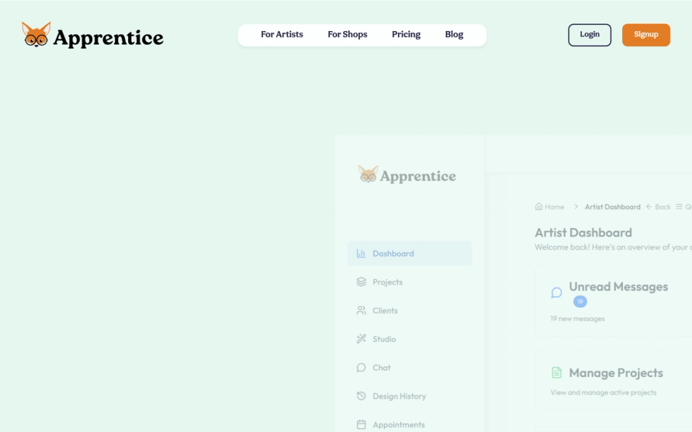 Apprentice is a comprehensive business management platform designed specifically for tattoo artists and shops. It provides an all-in-one solution to streamline operations, reduce administrative chaos, and help artists focus on their craft.