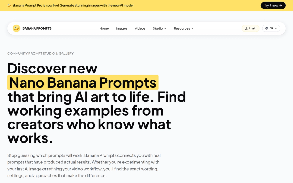 Banana Prompts is a community-driven platform that provides free, tested AI prompts specifically designed for popular AI models including Nano Banana Pro, Sora 2, and Veo 3. The platform serves as a comprehensive library where creators share their successful prompts along with the exact settings and techniques that produced actual results.
